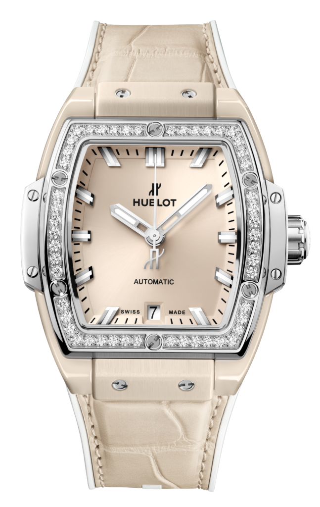 HUBLOT, SPIRIT OF BIG BANG BEIGE CERAMIC TITANIUM DIAMONDS 39MM
