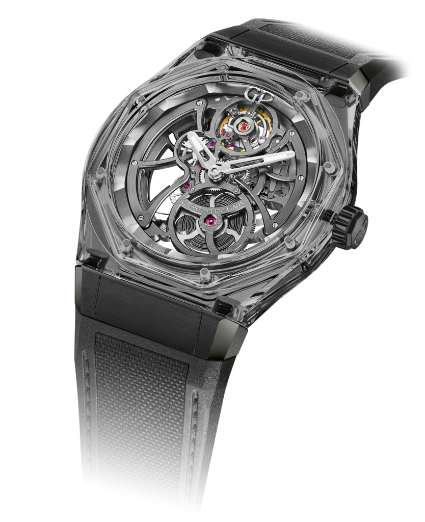 Один из самых крутых дизайнов в современном высоком часовом искусстве – наручные часы с корпусом, выточенным из синтетического сапфира. Компания Girard-Perregaux уже входит в престижный клуб швейцарских часовых брендов, успешно освоивших это искусство. Quasar Tourbillon with Three Bridges, первые сапфировые часы бренда, появились в 2020 году, годом позже за ними последовала сапфировая модель Laureato Absolute Light, одни из редчайших спортивных часов с корпусом, полностью изготовленным из синтетического сапфира.
